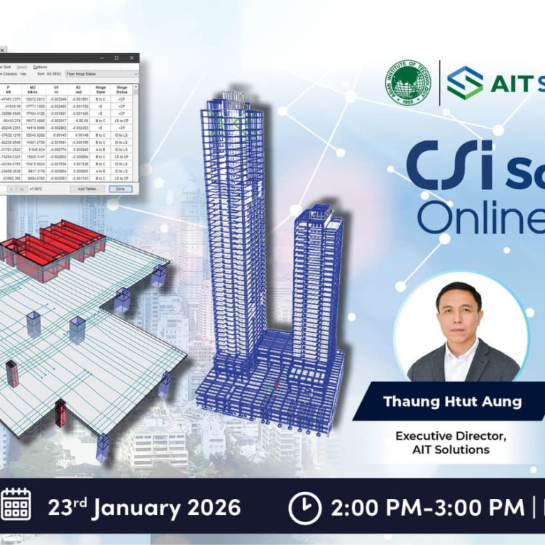 On 23 January 2026, AIT Solutions and ACECOMS conducted the CSi Software Online Forum. The forum was an interactive and informative session that brought together practicing structural engineers as well as students from the region to discuss queries related to ETABS, SAP2000, SAFE, and PERFORM3D. During the forum, Mr. Thaung Htut Aung, Executive Director of…