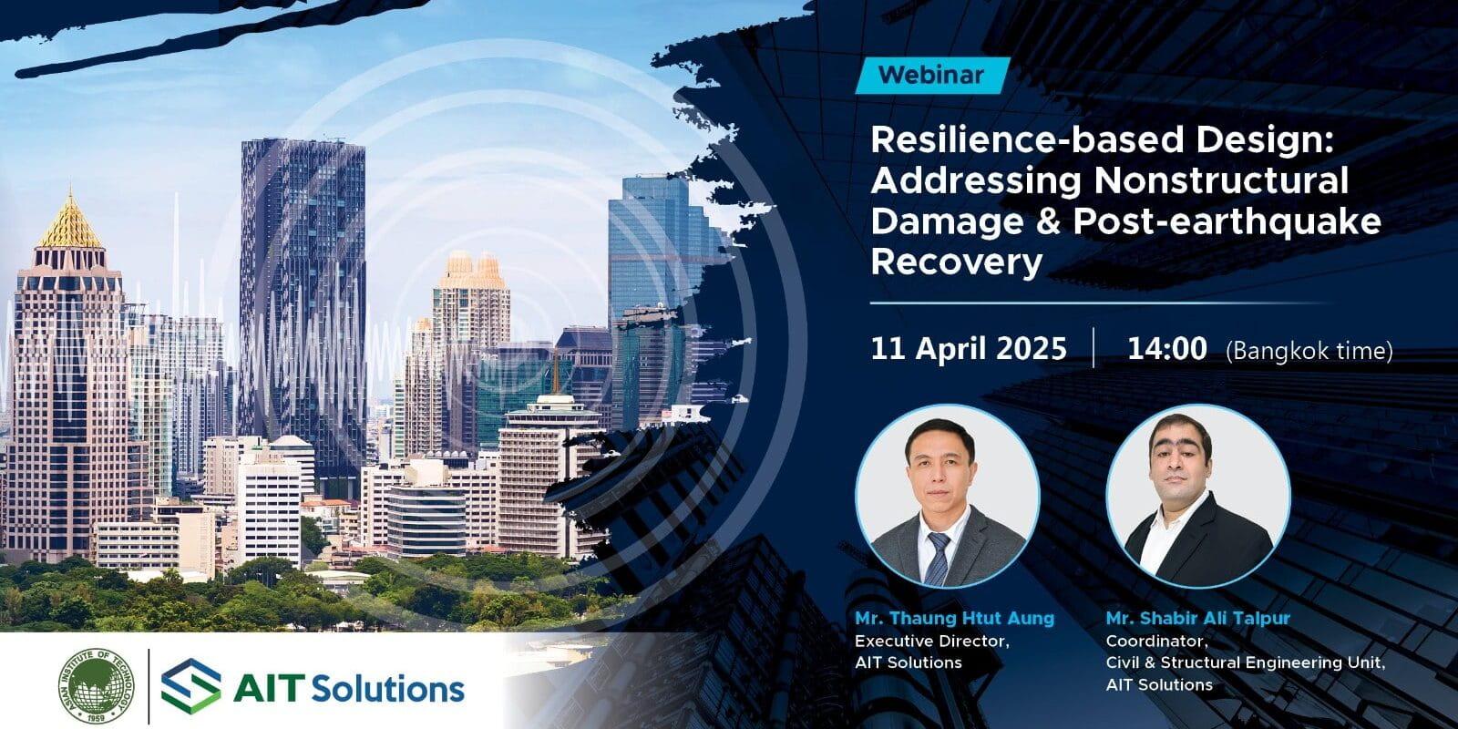 On 11th April 2025, Mr. Thaung Htut Aung, Executive Director, AIT Solutions, and Mr. Shabir Ali Talpur, Coordinator, Civil & Structural Engineering Unit, AIT Solutions conducted a webinar on Resilience-based Design: Addressing Nonstructural Damage & Post Earthquake Recovery.