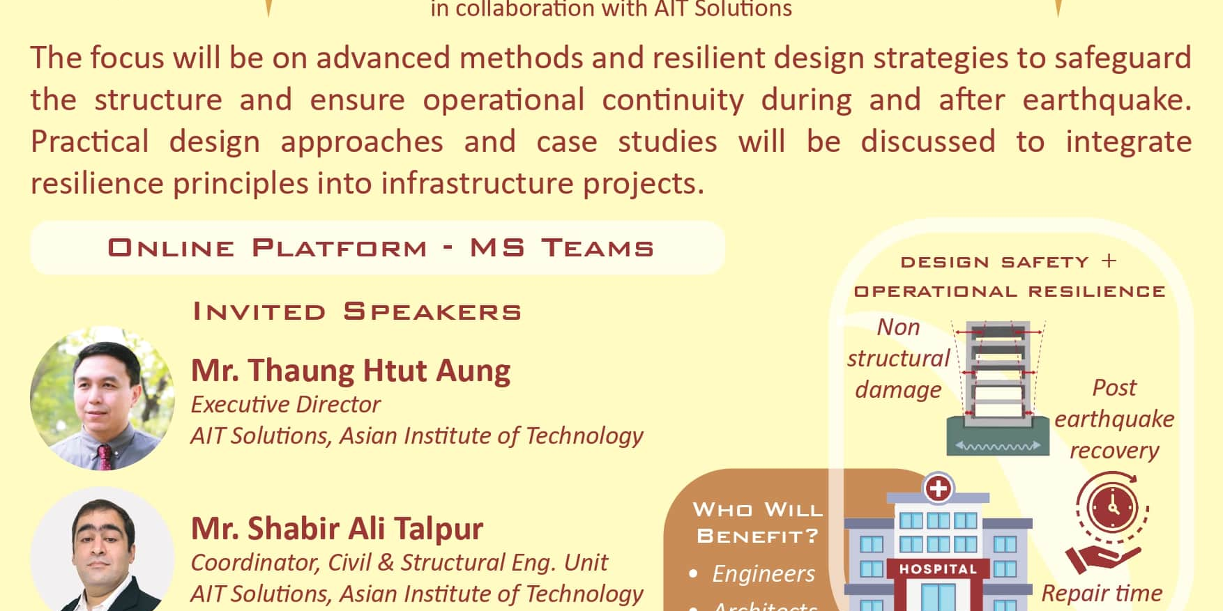 This session will explore advanced methods and resilient design strategies to safeguard structures and ensure operational continuity during and after earthquakes. Participants will gain insights into minimizing both structural and non-structural damage, reducing repair costs and recovery times, and practical design approaches and case studies.
