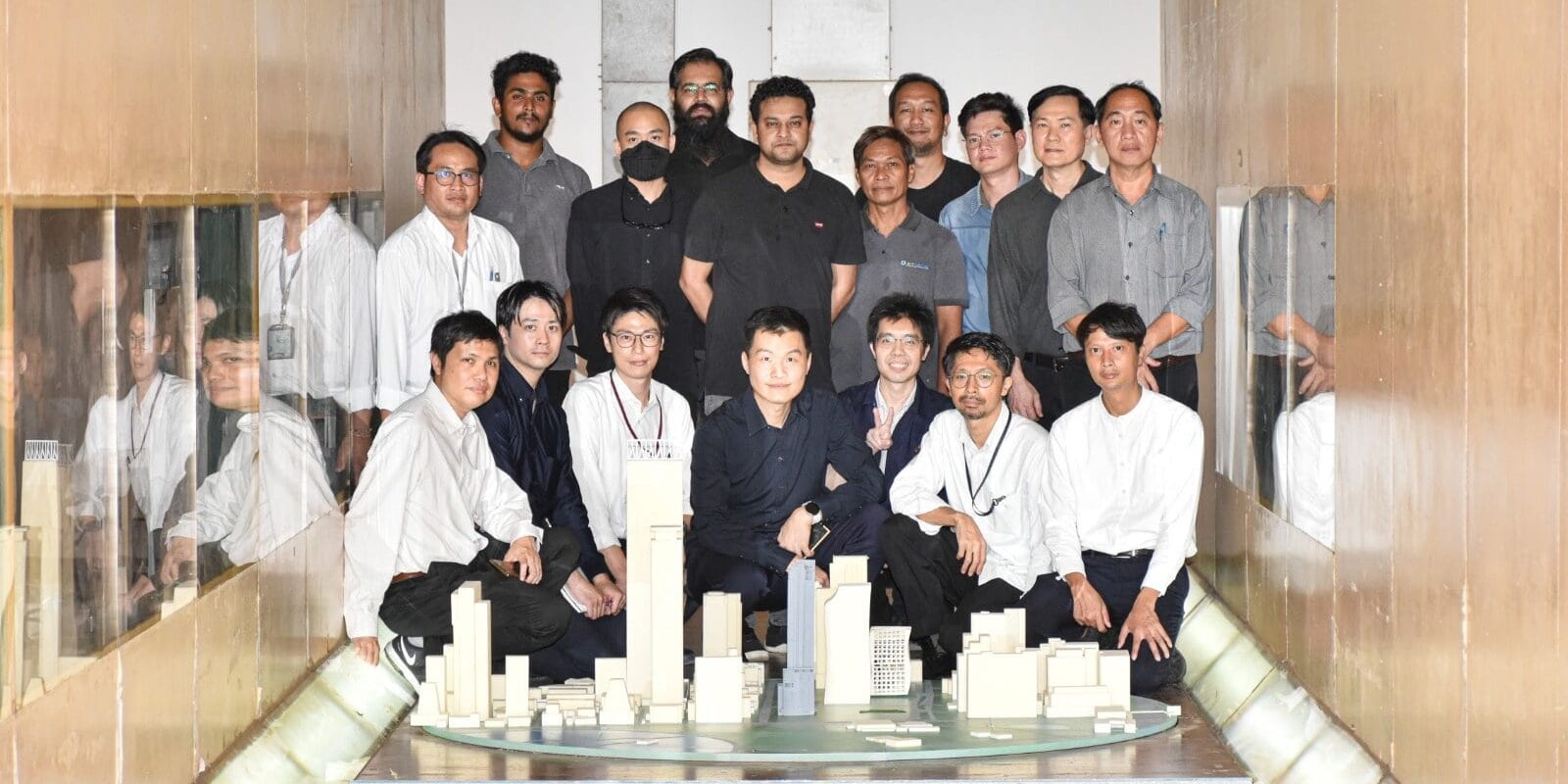 The visit began with an overview of AIT Solutions comprehensive wind engineering services—from design consultation and wind studies to physical model fabrication, followed by observing the operations at AIT-TU Wind Tunnel facility